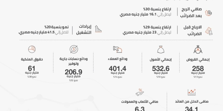 حقق بنك القاهرة صافي أرباح بعد الضرائب بلغت 16.1 مليار جنيه مصري، بزيادة 30% عن صافي أرباح عام 2024 التي بلغت 12.4 مليار جنيه مصري.